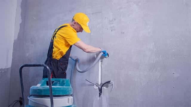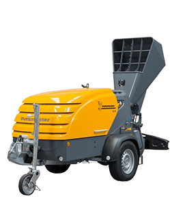 Устройство замешивает раствор штукатурки, затем штукатурный раствор подаётся под давлением, необходимым для равномерного распределения.