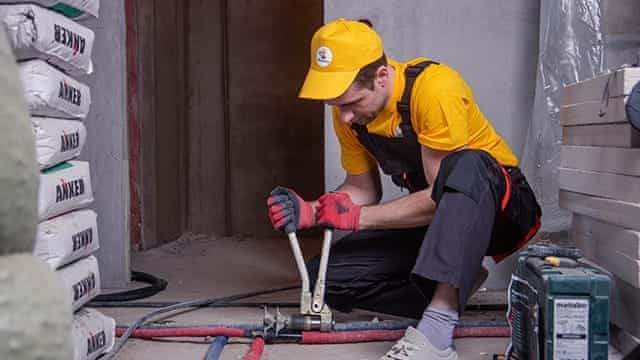 Проверяем герметичность соединения труб. Надежно запресовываем все гильзы на соединение трубы отопления, которые идут к радиатору.